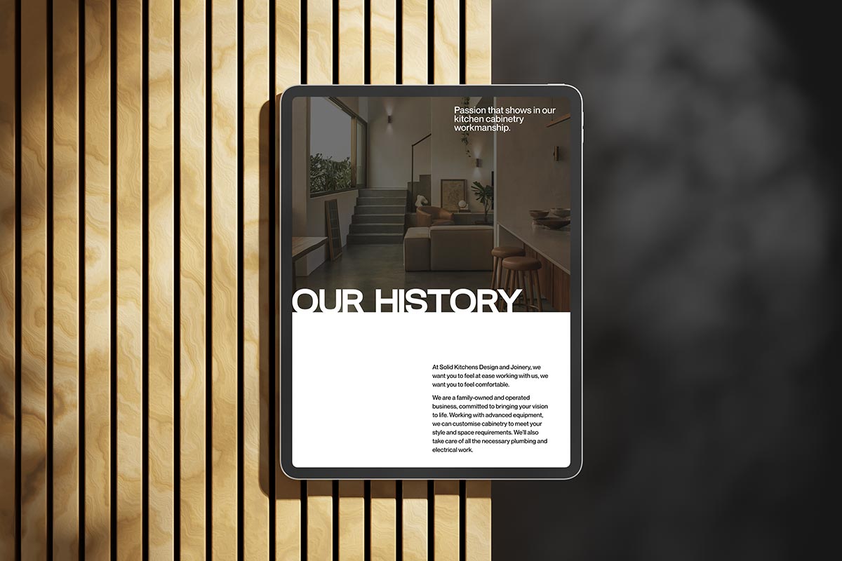 Our work began with logo design and full business branding. Solid Kitchens needed a look that reflected their craftsmanship, modern style, and family-driven values. We created a brand identity that balanced sophistication with approachability—highlighting their reputation for quality cabinetry and bespoke kitchens. This visual identity became the foundation for every touchpoint, from brochures and print material to their digital presence.